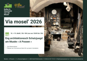 6. Abrëll – Via Mosel; Schatzsuche Architektonesch Schatzjuegd am Musée « A Possen » Maacht Iech am Kader vun de Portes Ouvertes Via Mosel op eng spannend Entdeckungsrees a lëft